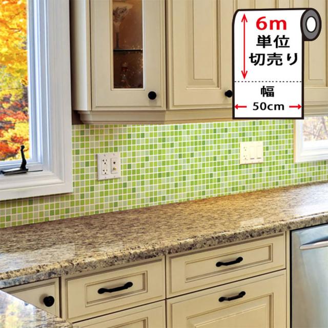壁紙 シール タイル 【 モザイクタイル柄の貼ってはがせる壁紙シール 】【 お得な6mセット 】 モザイクタイル シート モザイクタイルシール のり付き 壁用 リメイクシート ウォールステッカー アクセントクロス カッティングシート DIY 輸入壁紙 宅B