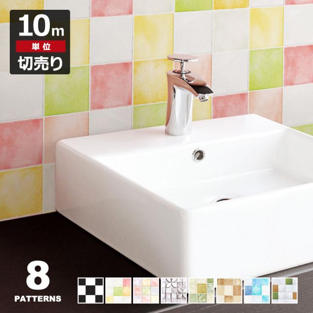 壁紙 シール タイル 【 大き目タイルデザインの壁紙シール 】【 お得な壁紙10mセット 】 壁紙 タイル はがせる シール のり付き 壁用 クロス リメイクシート ウォールステッカー アクセントクロス カッティングシート ウォールシート 輸入壁紙 リフォーム 宅B