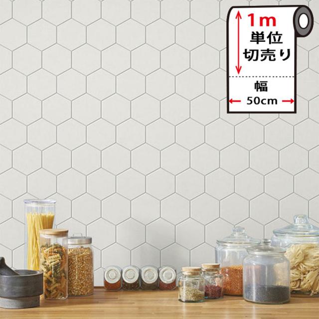壁紙 シール タイル 【 ハニカムタイル柄の貼ってはがせる壁紙シール 】幅50cm×1m単位 厚手 のり付き 壁用 リメイクシート 北欧 おしゃれ かわいい アクセントクロス カッティングシート DIY リフォーム 輸入壁紙 幾何学模様 ハニカム柄 六角形 宅B