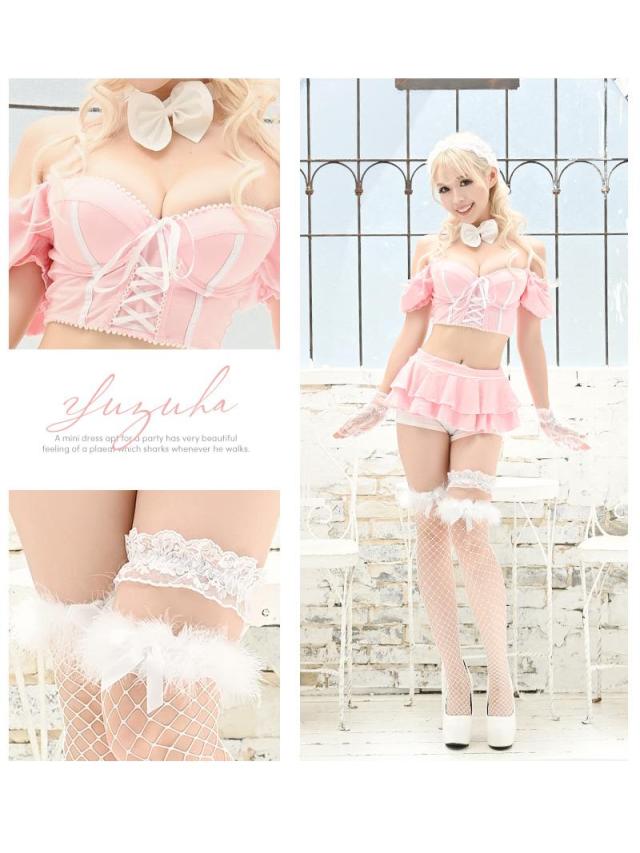☆レース装飾がメイド風でCUTEなレディースコスプレはうさぎのカチューシャとしっぽつきで小物まで可愛いハロウィンコスプレ♪