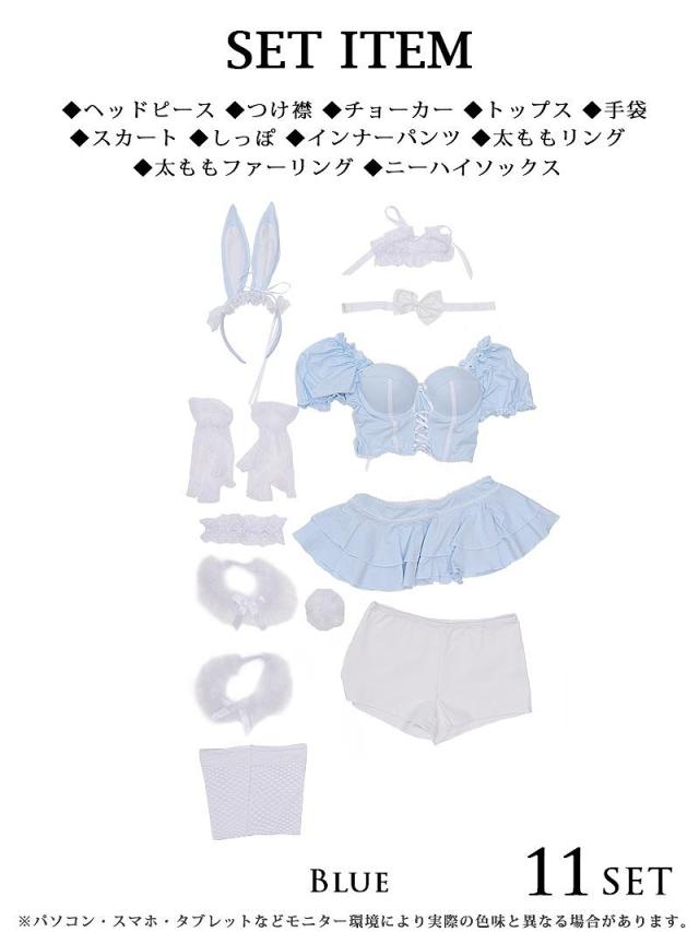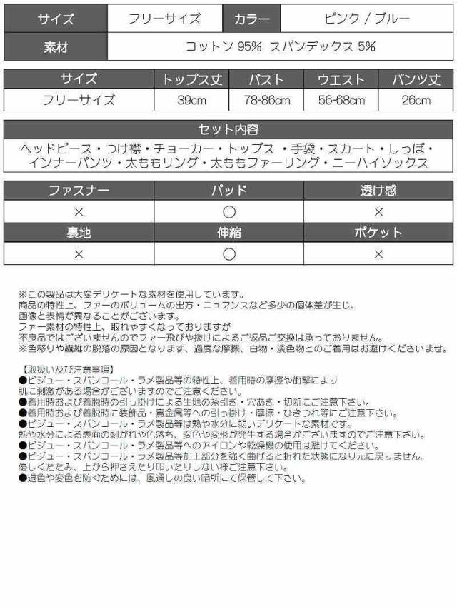 セット内容:ヘッドピース・つけ襟・トップス ・スカート・手袋・ニーハイソックス・インナーパンツ・しっぽ・チョーカー・太ももリング・太ももファーリング