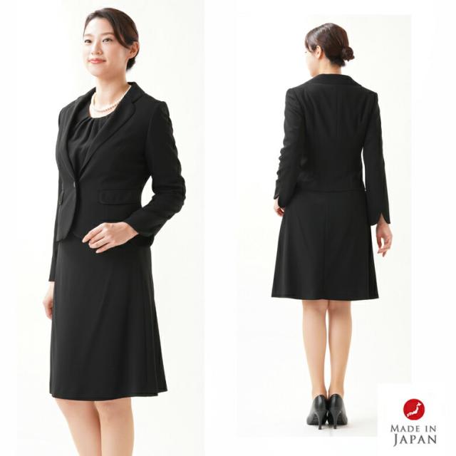 【レンタル】4泊5日 レディース 日本製 ブラウス付3点セットスカートスーツ 喪服 礼服 礼服レンタル 葬式 法事 礼装 ブラックフォーマル 喪服レンタル レンタルスーツ 15時までのご注文で即日発送可能 卒業式 葬儀 礼服 クリーニング不要 当日発送 送料無料