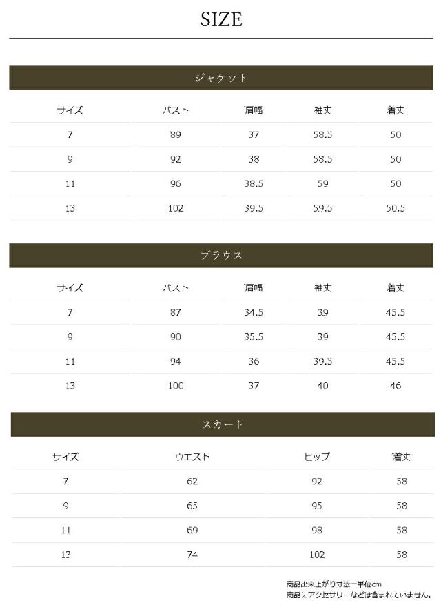 女性らしさ満載のスカートをセットしたスーツは幅広い年代の女性へおすすめです。