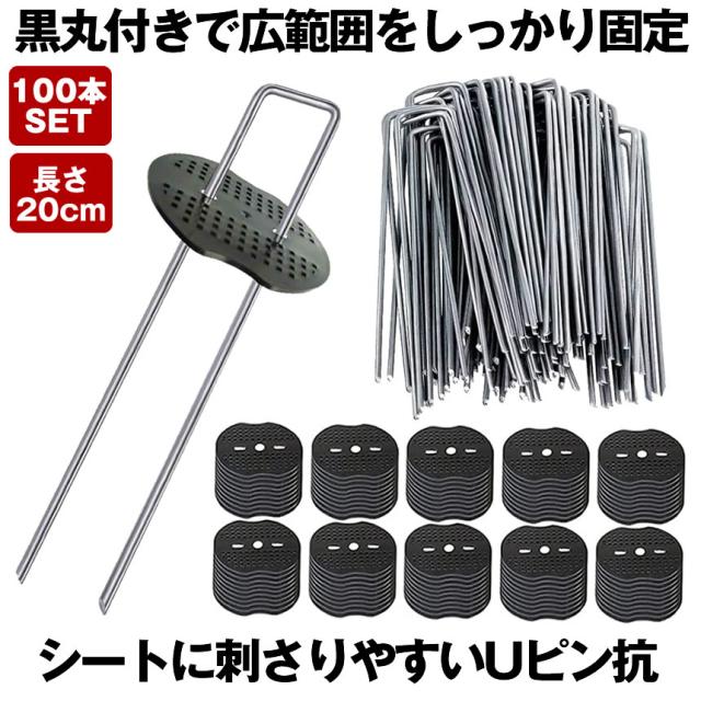 防草シート ピン Uピン杭 黒丸付 固定ピン 除草シート 100本 防そうシート 防そうしーと 固定用 固定 人工芝 おさえピン 押さえピン 20cm