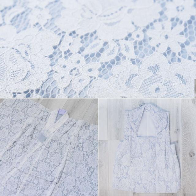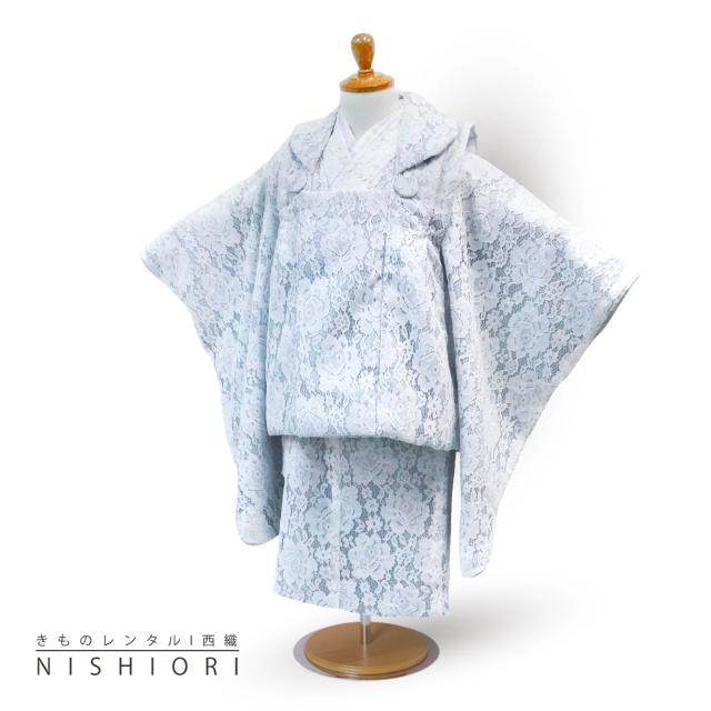 総レース 七五三 レンタル 女の子 3歳 被布 753着物 フルセット 着物レンタル 貸衣装 三歳 子供着物 女児 子ども 結婚式 和装 エレガント プリンセス風 洋風 かわいい 新品足袋プレゼント No.292 ブルー×ブルー