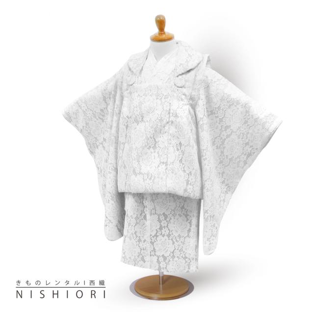 総レース 七五三 レンタル 女の子 3歳 被布 753着物 フルセット 着物レンタル 貸衣装 三歳 子供着物 女児 子ども 結婚式 和装 エレガント プリンセス風 洋風 かわいい 新品足袋プレゼント No.293 ホワイト