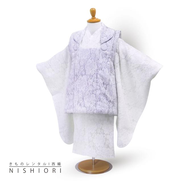 総レース 七五三 レンタル 女の子 3歳 被布 753着物 フルセット 着物レンタル 貸衣装 三歳 子供着物 女児 子ども 結婚式 和装 エレガント プリンセス風 洋風 かわいい 新品足袋プレゼント No.294 ピンク×ホワイト