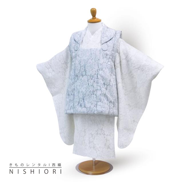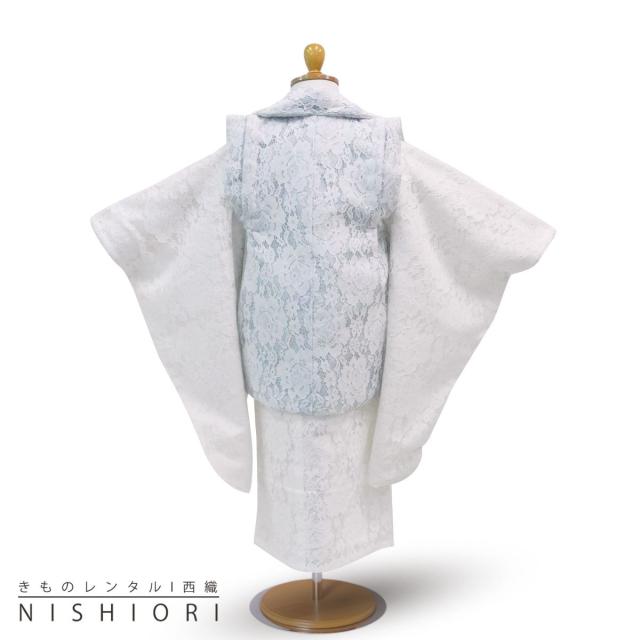 総レース 七五三 レンタル 女の子 3歳 被布 753着物 フルセット 着物レンタル 貸衣装 三歳 子供着物 女児 子ども 結婚式 和装 エレガント プリンセス風 洋風 かわいい 新品足袋プレゼント No.295 ブルー×ホワイト