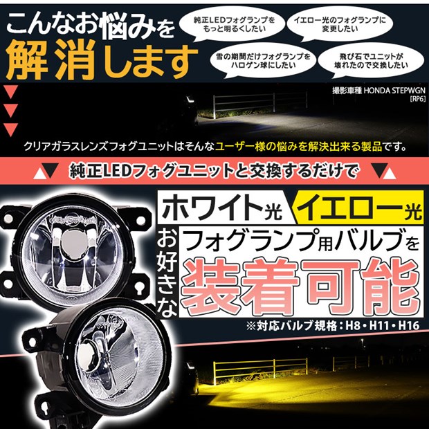 単 H11 LED ホンダ 純正 対応 クリアガラスレンズフォグランプユニット LEDフォグランプと交換可能 防水 Eマーク バルブ別売 44-D-1