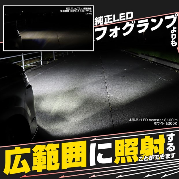◆純正LEDフォグ装備車及びH16型ハロゲンフォグ装備車にH11ハロゲンバルブを装着する場合、バルブの消費電力が非常に高い為に車両配線に負荷が掛かります。別途リレーハーネス等で充分対策を行った上で取り付けをしてください。