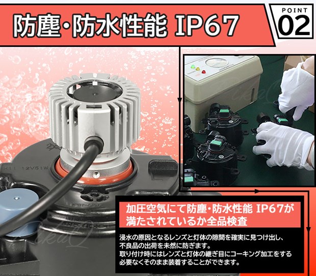 防塵・防水性能IP67を満たし、製造工場にて加圧空気検査を全品実施しています。