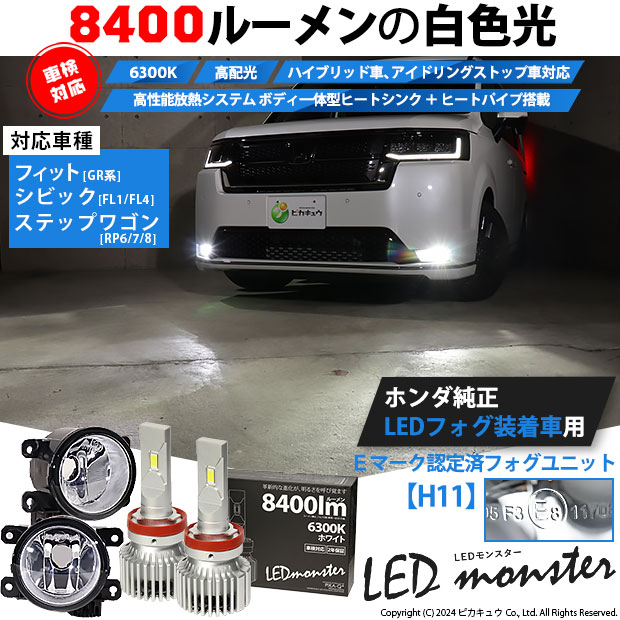 ピカキュウ,LED専門店ピカキュウ,LED MONSTER L8400 FOG LAMP KIT,LEDモンスターL8400フォグランプキット,3200K,爆光,良配光,カットライン,純正LEDフォグランプ,ガラスレンズ付,HONDA,ホンダ