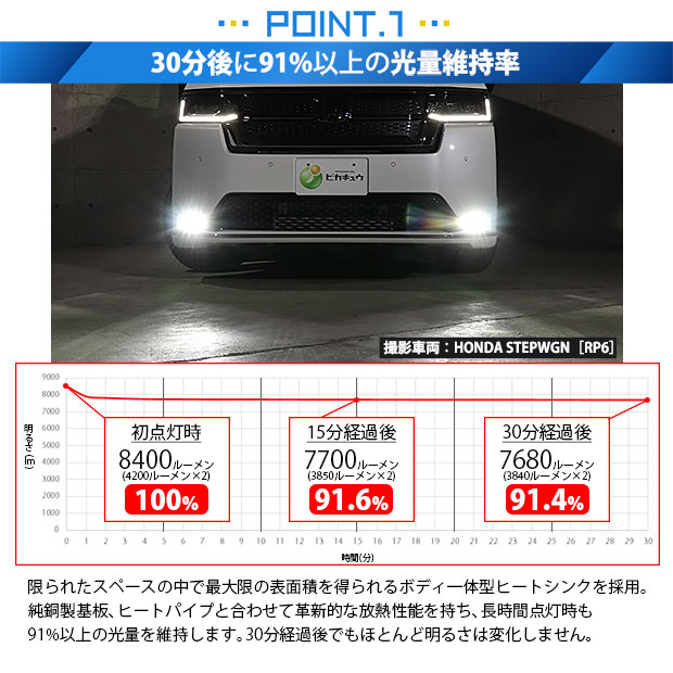※ルーメン値は、バルブ2個(車両一台分)の値を示しています。