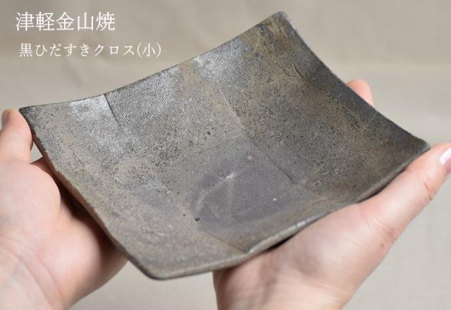 津軽金山焼 黒ひだすき クロス(小) 陶器 皿