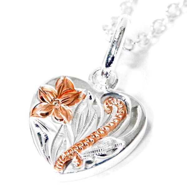 ハワイアンジュエリー ハート プレート プルメリア 花 フラワー 波模様 ピンクゴールド レディース シルバー925 ネックレス
