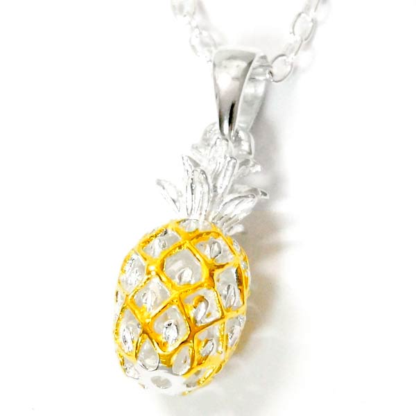 Sサイズ ハワイアンジュエリー パイナップル パイン フルーツ 果物 イエローゴールド レディース シルバー925 ペンダント ネックレス