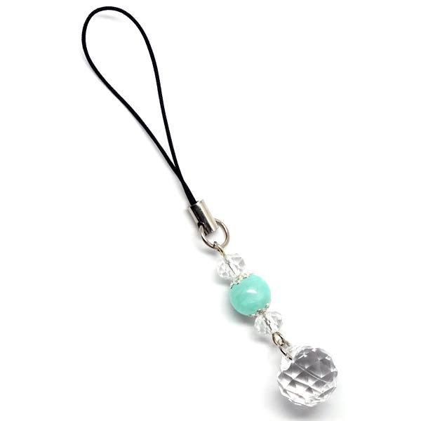 グリーンカルサイト クリアカットビーズ 4連ドロップ 携帯 スマホ ストラップ 天然石 パワーストーン