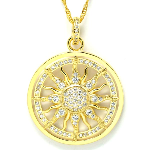 サン 太陽 クリアジルコニア イエローゴールドカラー メンズ ペンダント ネックレス
