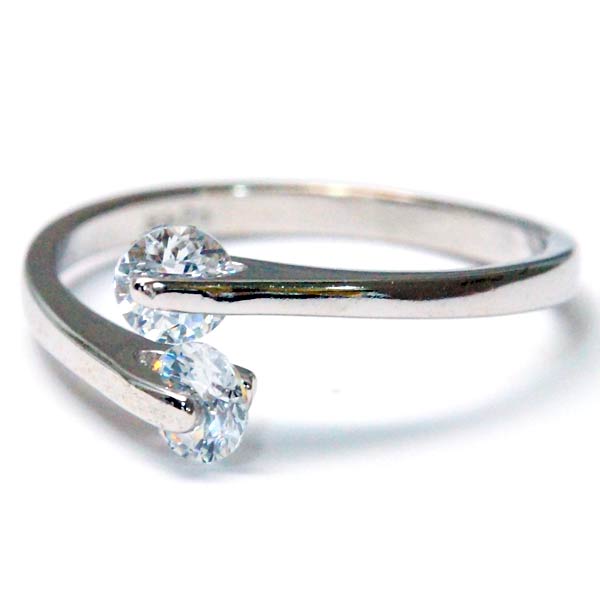 13号ベース フリーサイズリング 2ストーン クリアジルコニア CZ装飾 2ストーン ツインアーム レディース リング 指輪