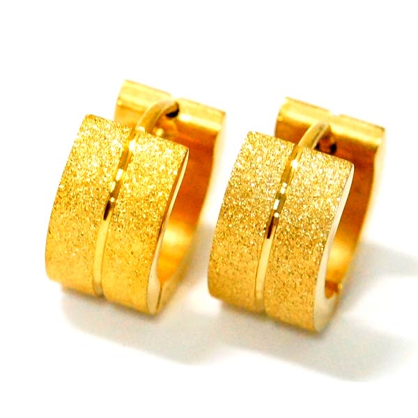 7mm幅 太め フープピアス ステンレス ゴールドカラー ラメ 粒子 吹き付け センターライン メンズ レディース ピアス