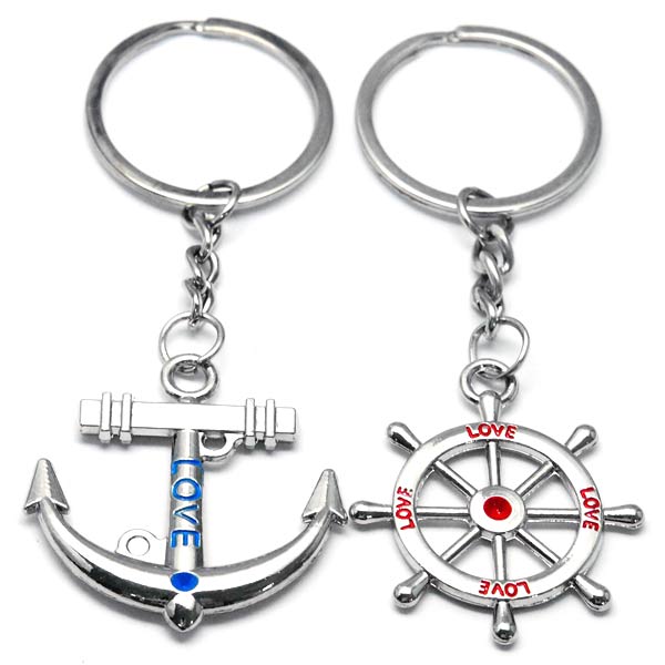 アンカー 錨 ステアリングホイール 操舵輪 ブルー レッド・LOVE文字入り お揃い ペアキーホルダー キーホルダー