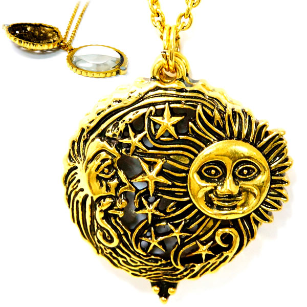 サン 太陽 ムーン 月 スター 星 ゴールドカラー ルーペ付き メンズ ペンダント ネックレス