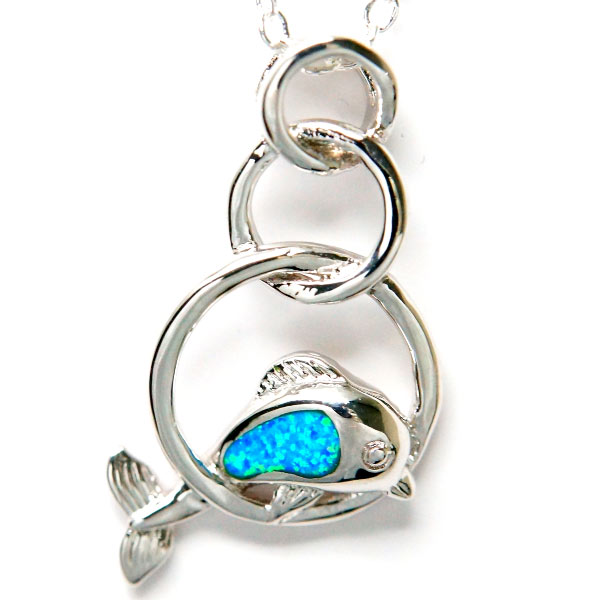 ドルフィン イルカ 輪くぐり オパール ハワイアンジュエリー風 レディース ペンダント ネックレス