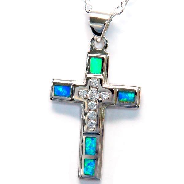 ハワイアンジュエリー ペンダント ネックレス オパール クリアジルコニア クロス 十字架 メンズ レディース シルバー925