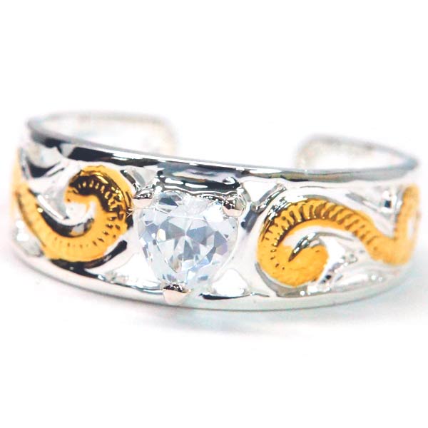 可愛いハートの形が女性に人気のハートシェイプカットストーンを使ったハワイアンジュエリーレディースシルバー925トゥーリングです。装飾のメインとなるキュービックジルコニアは女性らしい雰囲気漂うハートシェイプカットで仕上げられ可憐な存在感を十二分に発揮しています。透き通るような輝きは可愛らしさだけではなく煌びやかな大人の雰囲気も十分。リング本体の装飾にはアームの後方まで続く「スクロール」の波模様が刻まれています。透かし彫りにしたことで見た目にも軽やかな印象となり指元をスッキリと見せてくれます。さらに部分的に使ったイエローゴールドの輝きが南国ハワイを想わせるトロピカルなイメージに仕上げられています。リング内側には高品質なシルバーの証「925」の刻印入り。ピンキーリングとしても使える2WAYタイプですので季節を華やかに彩るアクセサリーをお探しの方にお勧めするハワイアンジュエリーレディースシルバー925トゥーリングです。