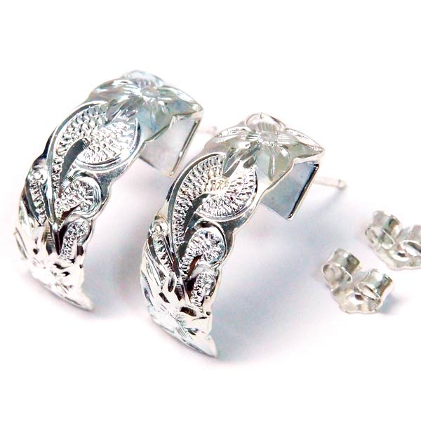 ハワイアンジュエリー ハーフフープ スタッドピアス プルメリア 花 波 カレイキニ カットアウト レディース シルバー925