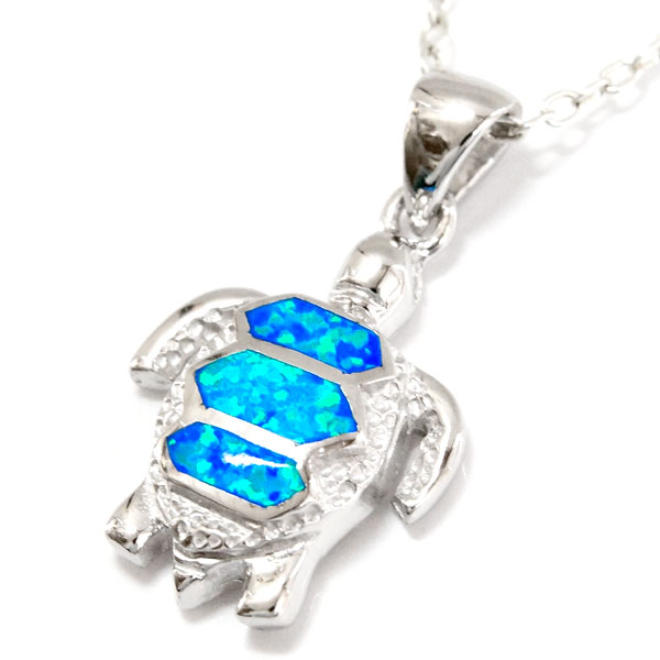 ハワイアンジュエリー ペンダント ネックレス ホヌ 海ガメ 立体型 ブルーオパール メンズ レディース シルバー925