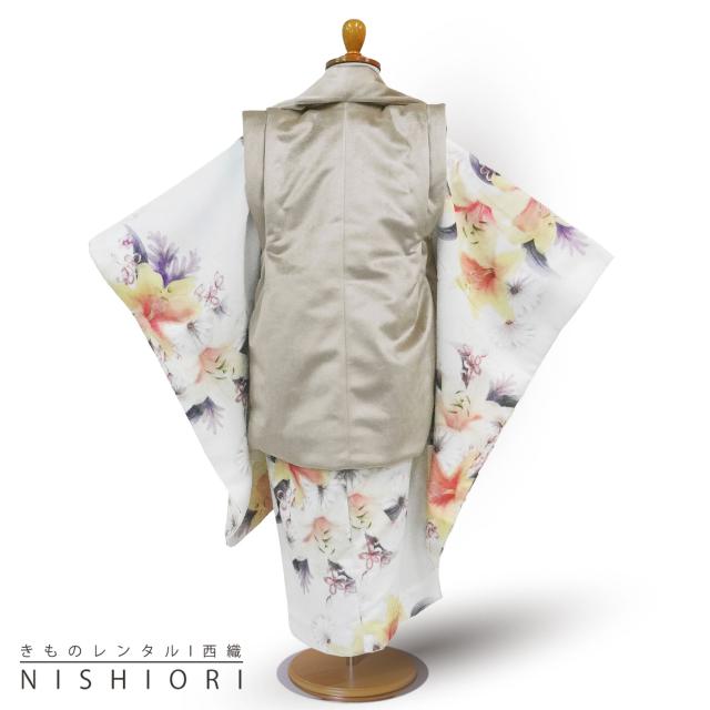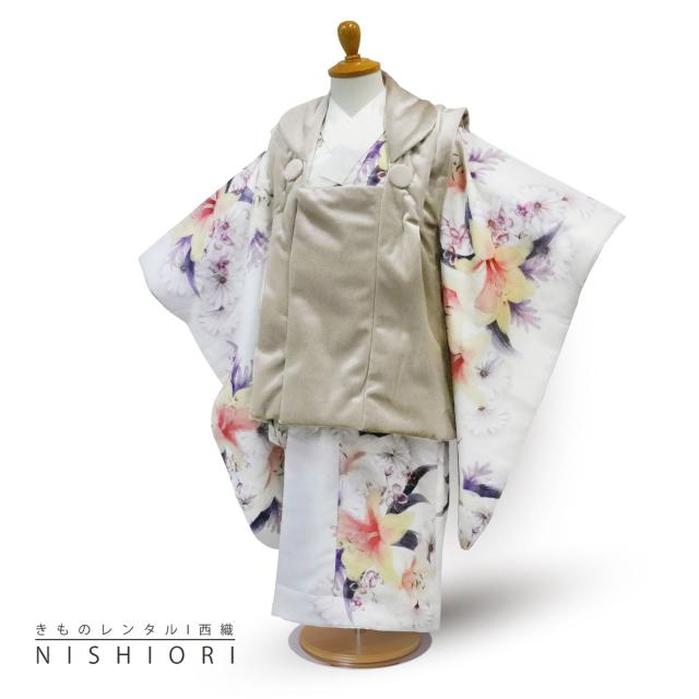 ベロア生地 七五三 レンタル 女の子 3歳 被布 753着物 フルセット bonheur saisons(ボヌールセゾン) 着物レンタル 貸衣装 三歳 子供着物 女児 子ども 結婚式 和装 エレガント 花柄クラシカル ふんわり 新品足袋プレゼント No.287 ベージュ