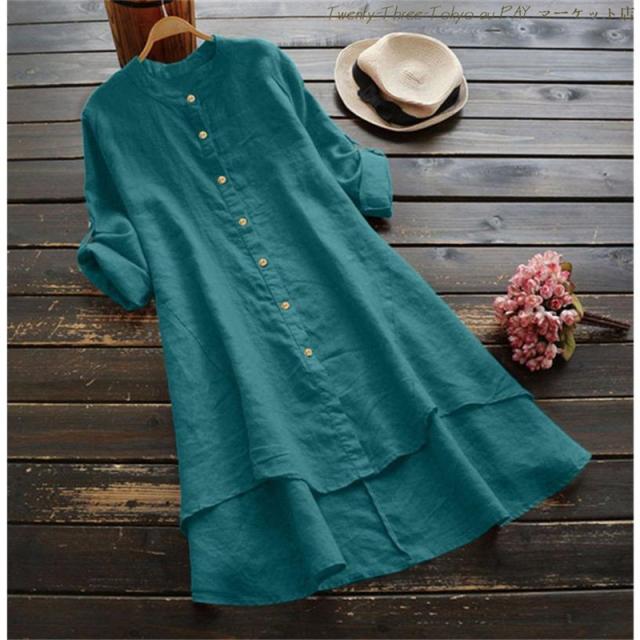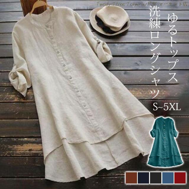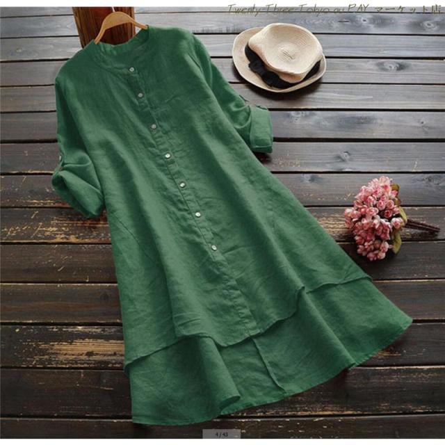 ワンピース シャツワンピース レディース チュニック 冷房対策 羽織 夏 春 秋 ロングシャツ 体型カバー ゆったり 長袖 リネンシャツ