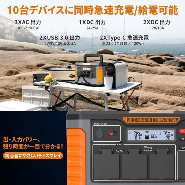 【正規代理店】BALDR PIONEER1500 ポータブル電源 1500W 1328Wh 359000mAh PSE認証済 大容量 急速充電 MPPT制御方式採用 LEDライト