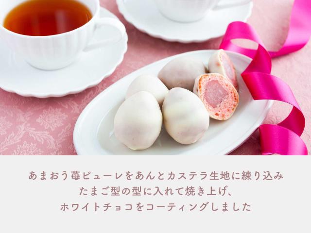 チョコレートコーチング(国内製造)、生あん、砂糖、鶏卵、小麦粉、水あめ、ショートニング、マルトース、油脂加工食品(植物油脂、還元水あめ、その他)、加糖練乳、乳等を主要原料とする食品、いちごピューレ、マーガリン、食塩、寒天/膨張剤、乳化剤、ソルビット、香料、酸味料、着色料(カルミン酸、カロチノイド)、(一部に小麦・卵・乳成分・大豆を含む)