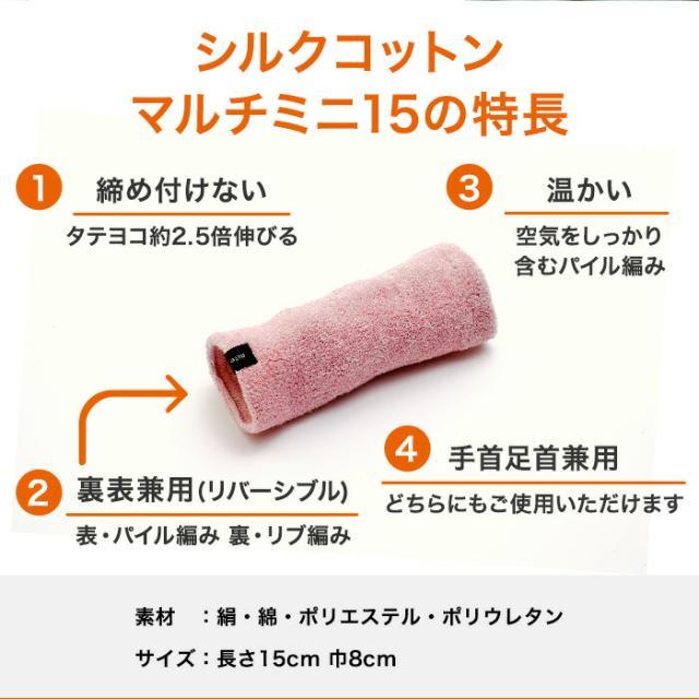 シルク ミニウォーマー 15cm ミーテ 軽やかシルクコットン マルチミニ15 健康グッズ 手首 足首 二の腕 アーム 冷え 温め サポーター 短い ショート ゆったり 締め付けない ソフト 夏用 冬用 関節 冷え対策 日本製 冷房 クーラー 就寝中 睡眠 レディース メンズ