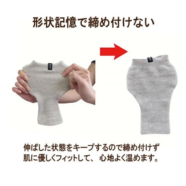 手首に着用する場合は、タテに引っ張らずに尺骨茎状突起を包むように。 ひじ周りの冷えやすい部位に。 | ||