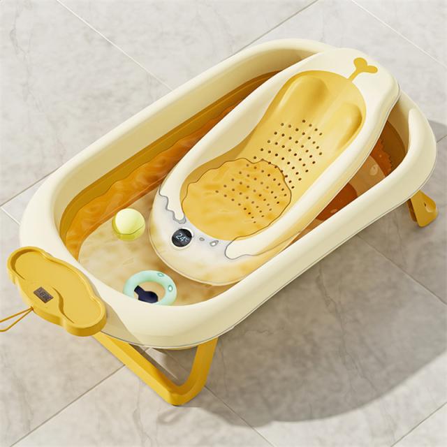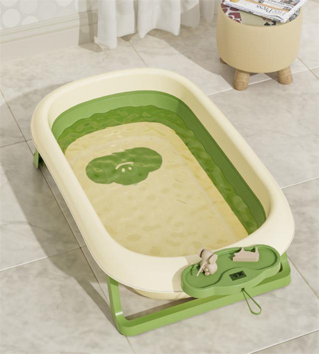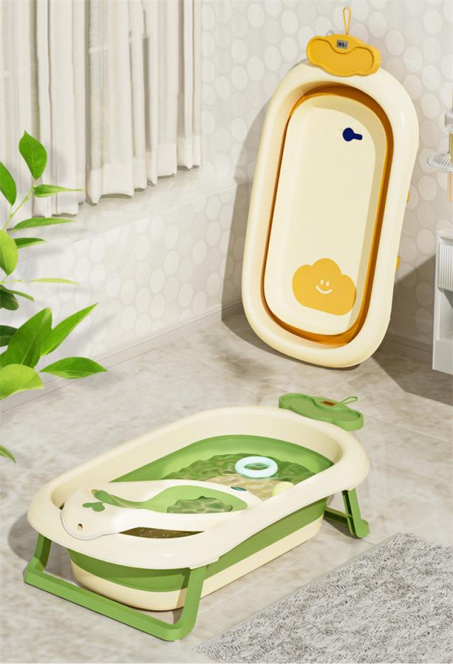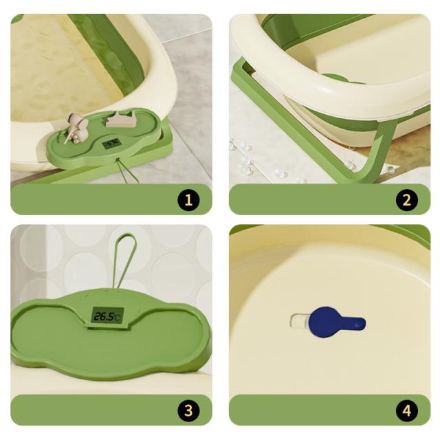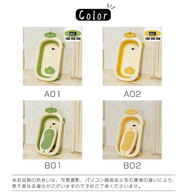 ベビーバス 折りたたみ式 洗い桶 畳める 温度計付き ワイドサイズ 水抜き穴付き 新生児 乳幼児 タライ お風呂 ペット たらい