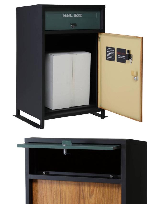 シリンダー錠付で防犯面でも安心です。下段は宅配後に施錠後に上段のポストに入れてもらいます。