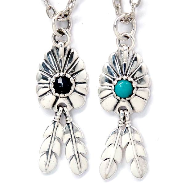 インディアンジュエリー ネックレス アローヘッド フラワー 天然石 フェザー シルバー925 【ターコイズ/ブラックスピネル】