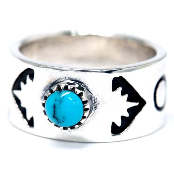 インディアンジュエリー リング 天然石 ターコイズ サンレイズ 太陽の光 ライトニングフラッシュ 閃光 シルバー925 メンズ