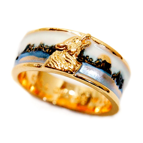 ウルフ 狼 月 ムーン スノウ 雪 遠吠え ゴールド レディース メンズ 男女兼用デザイン リング 指輪