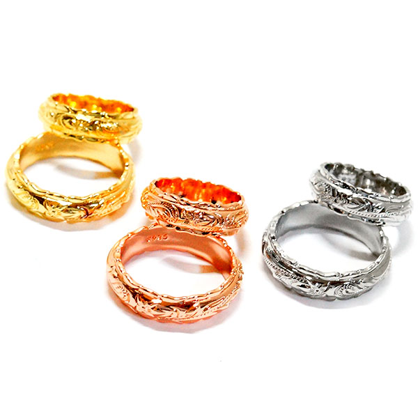 ハワイアンジュエリー風 プルメリア 花 フラワー 波 ウェーブ カップル ウェディング ペアリング お揃い リング