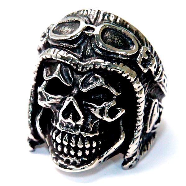 空軍パイロットを【スカル/髑髏】を使ってアレンジした愛嬌タップリのメンズステンレスリング!!