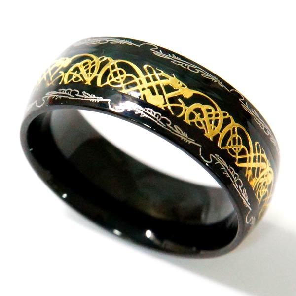 ドラゴン 龍 メッシュ ブラック イエローゴールド メンズ ステンレス リング