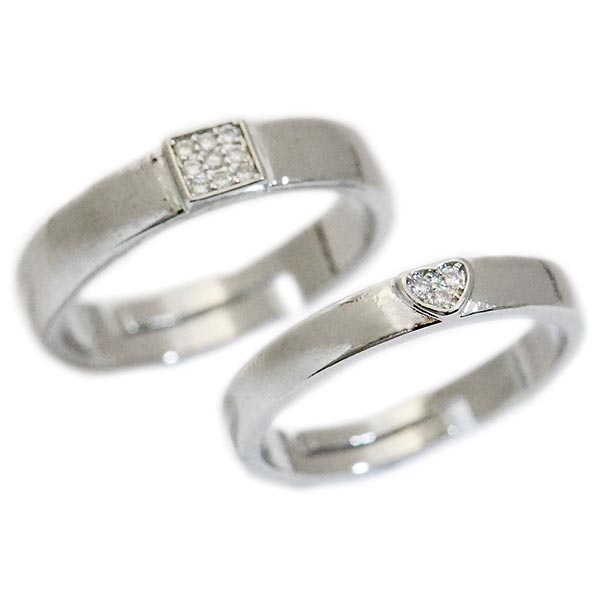 パヴェ ストーン ワンポイント キュービックジルコニア チタン フリーサイズ ジュエリー ペアリング お揃い リング( 四角 / ハート )