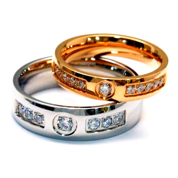★ゴージャス&オシャレな単体売りのペアリング♪ ★メンズ7個・レディース11個のクリアキュービックジルコニアを使った煌びやかなリングデザイン! ★ハーフラウンド(平甲丸)の形状が表面の美しい輝きを最大限に発揮する光沢仕上げ! ★錆びない・かぶれにくく変色しにくい・高級感&低価格とお得感たっぷりのステンレス製ペアリング ! ★プレゼントはもちろんコーディネートのオシャレなアクセサリーとしてもぜひオススメです♪