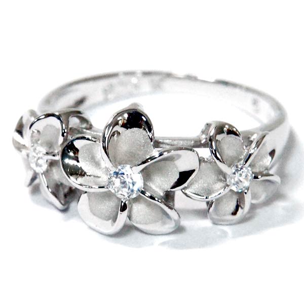 ハワイアンジュエリー リング プルメリア 花 フラワー グラデーション クリアジルコニア レディース シルバー925