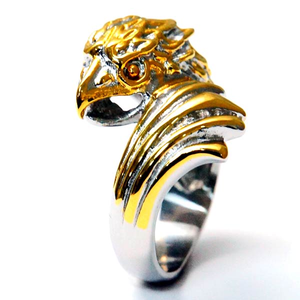 イーグル 鷲 鳥 3D 立体 ゴールド ビッグ ごつい メンズ ステンレス リング 指輪