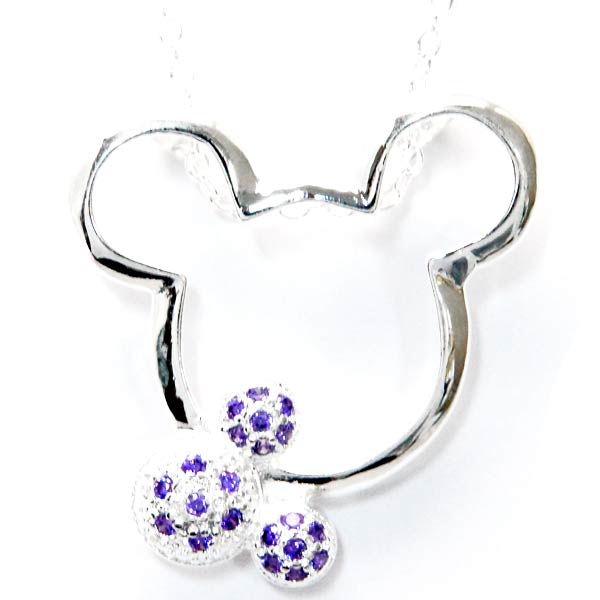 マウス ネズミ ネックレス ペンダント レディース ジュエリー ジルコニア CZ 【パープル/レッド/クリア】